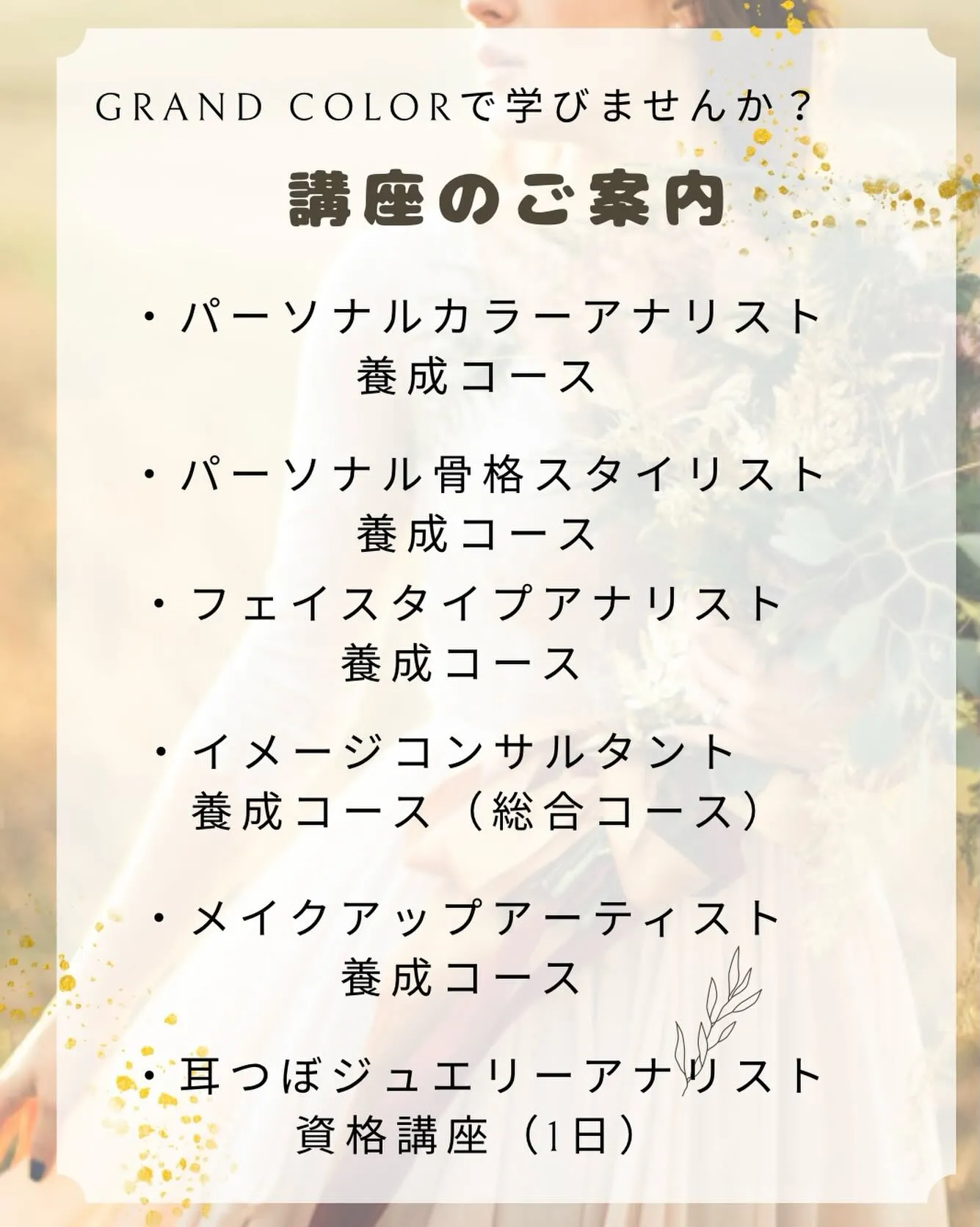 卒業後は自宅サロンを開きたい方、ネイルサロンやエステサロンの新メニューに取り入れたい方、ただ好きだから詳しく学びたい方…目的も様々です。