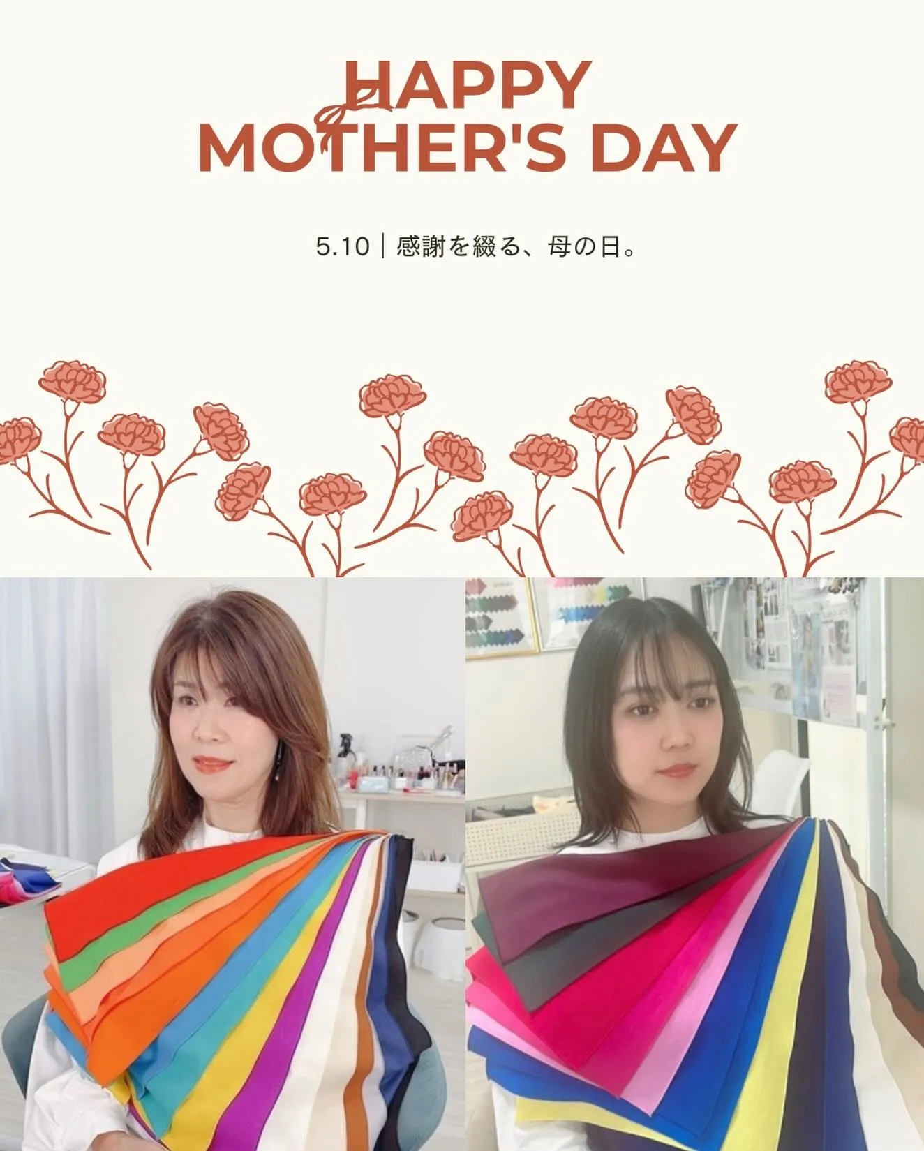 親子でも似合う色やファッションは違ったり、お互いの意外な結果に驚いたり親子で楽しい時間を過ごしていただけます🎁